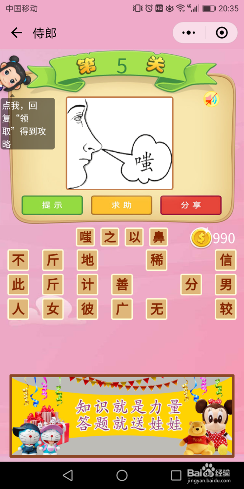 侍郎第5关谜底:看到图片前提反射就能想到当作语【嗤之以鼻】。