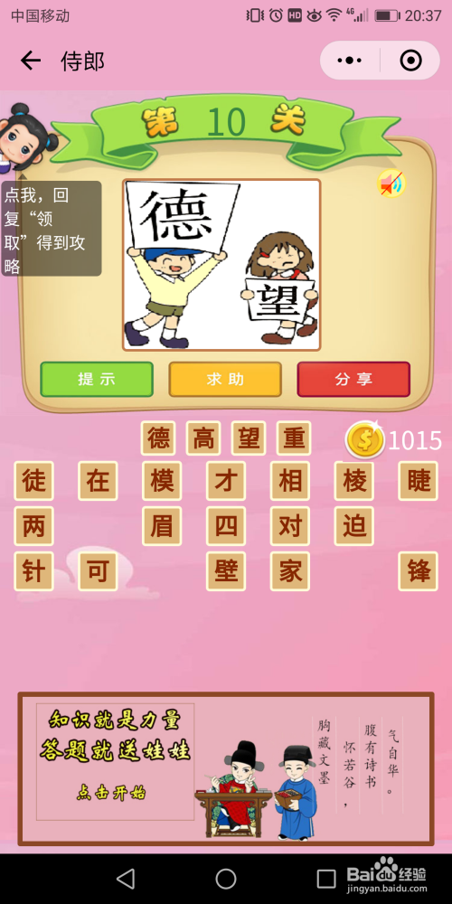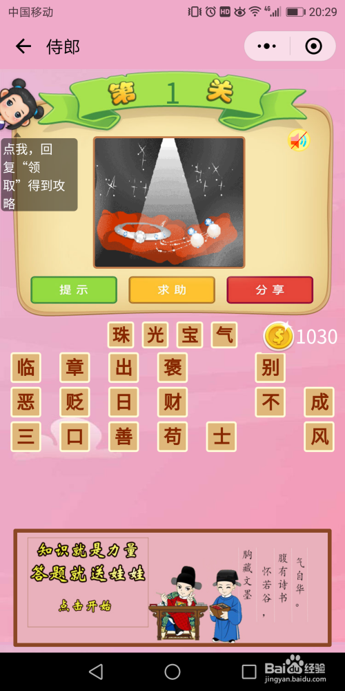 翰林关通关今后就进入到侍郎关,我们先来看一下侍郎前10关的谜底。