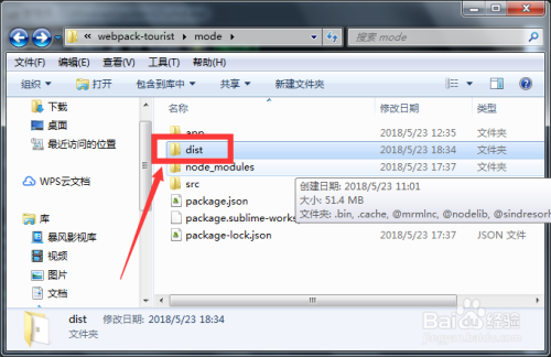 打开项目文件【mode】,可以看到【mode】文件夹下主动生当作了一个文件夹【dist】,如图: