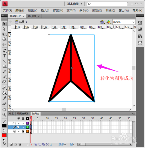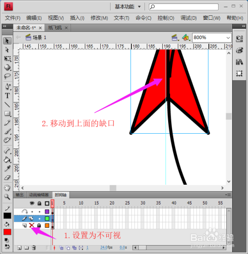 接着,回到被指导层,将纸飞机按F8键转化为图形,并移动到缺口的上部门,注重将新建的图层设为不成视,如图所示