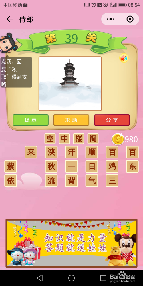 侍郎39关谜底:楼阁在空中,这种环境就是【扑朔迷离】。