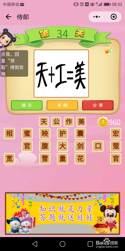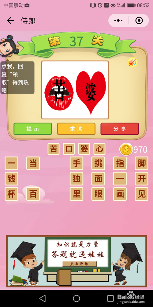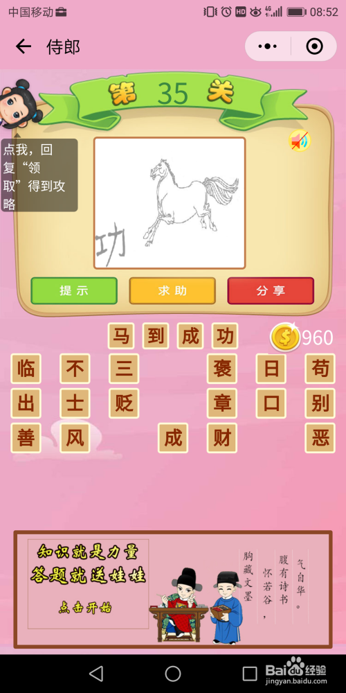 侍郎33关谜底:这个题不太轻易猜出来,经由过程提醒获得谜底是【经心投入】。