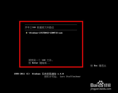 然后法式会主动搜刮电脑SAM数据库文件路径(也就是你的电脑账户的密码文件),搜刮完当作后按“Enter”键