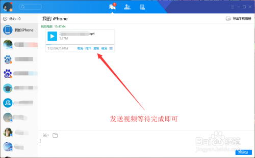 2. 找到电脑的视频文件,拖拽到我的iPhone对话框,如图所示期待发送完当作即可
