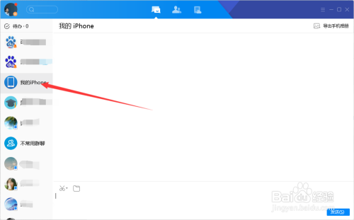 1. 确保手机安装了工具/原猜中的软件,电脑客户端打开该软件,找到我的iPhone,如图所示