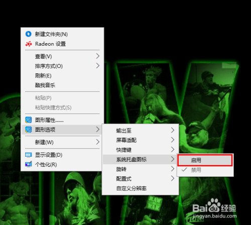 然后在弹出的菜单中,点击“图形选项”-“系统托盘图标”-“启用”。