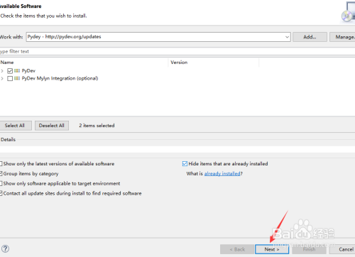 - 在安装pydev的插件的时辰,网址有可能会更新,选择合适的就可以