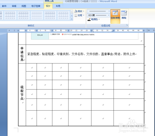 在文档中需要成立表格的处所进行绘制,当鼠标显示为画笔的图形时,我们就可以进行绘制了
