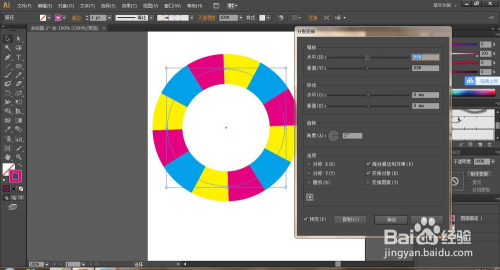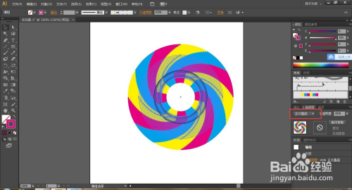 呼啦圈由良多种颜色绕着圆构成,实现这种应用首先应用到的是平面的界说图案,再变换和扭转功能,最后剪切蒙版。