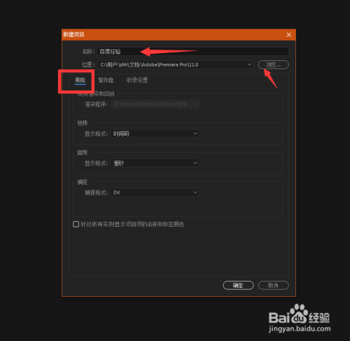 3. 步调2后,点击【新建项目】,弹出下图所示的窗口,设置名称和项目工程的路径,然后再【常规】选项卡下凡是连结默认设置即可,