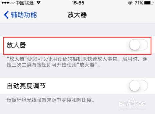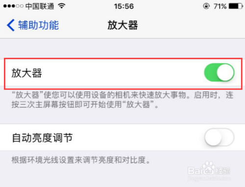 将放年夜器功能打开,放年夜器可以利用苹果手机的相机快速放年夜事物,跟实际糊口中的放年夜镜近似