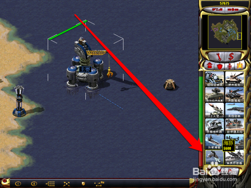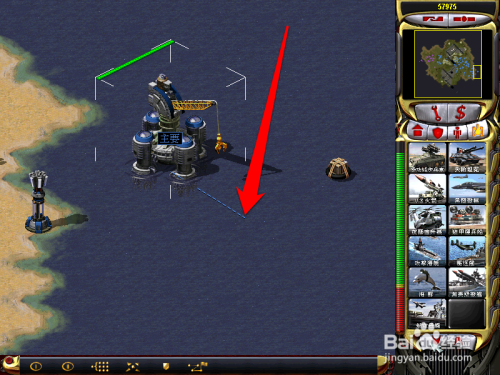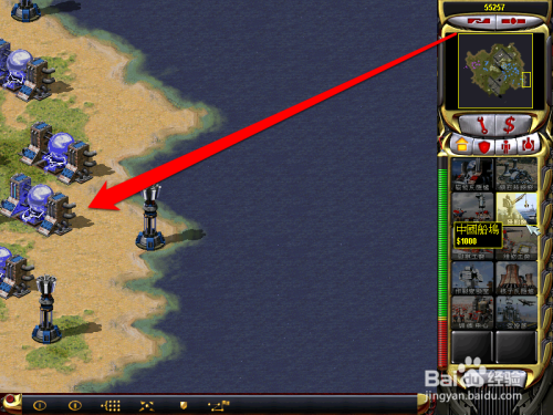 在红色鉴戒游戏,选择一个阵营后,成立本家儿要营地后,建造工场进级科技就可以建造船坞了。