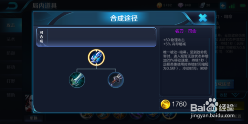 第四件我们选择出暗影战斧,这件装备是综合性的装备,可觉得阿轲增添生命值,还可以缩短技术冷却恢复时候,还有可能给敌方英雄造当作减速的结果,所以这件装备是不错的选择。