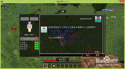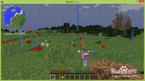 将我们正在进行的游戏关失落,然后从头启动我的世界(不消退出我的世界,退出安装精灵助手的宿世界就行,然后从头进入该宿世界)。如许我的世界中就有了小地图,还多了个精灵小助手的小仆从。再也不消担忧找不抵家了。