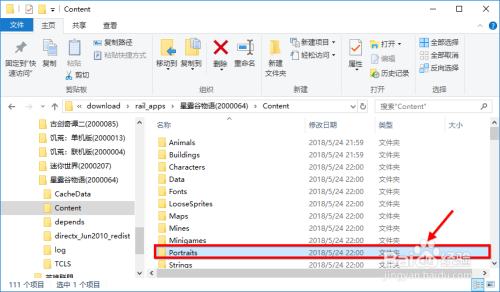 打开星露谷游戏目次,找到Content目次下的Portraits文件夹并打开。