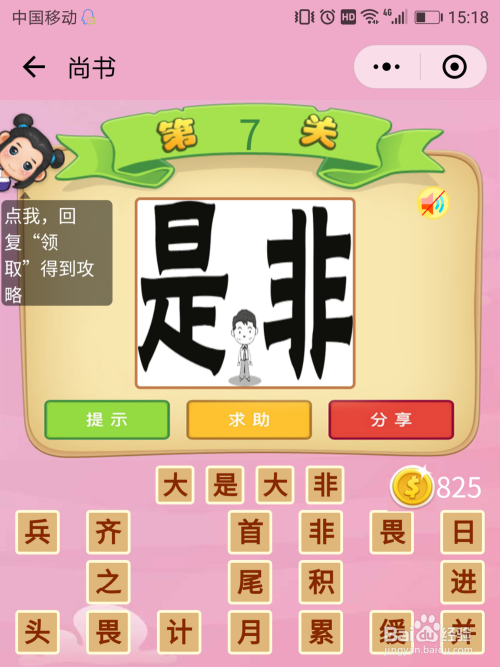 尚书7关谜底:两个文字比人还年夜,那么就是【年夜是年夜非】。