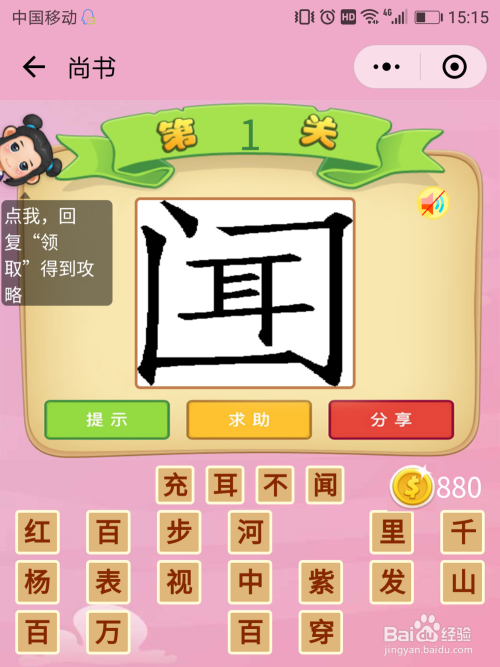 尚书1关谜底:测字游戏,页面上的字可以拆开当作耳朵的耳字和闻字。闻字下面被封口了,申明是不闻,谜底就是【充耳不闻】。