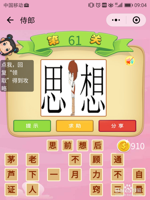 侍郎61关谜底:这一关的图片也是第二次呈现了,第一次的谜底是左思右想,此次则是【思前想后】。