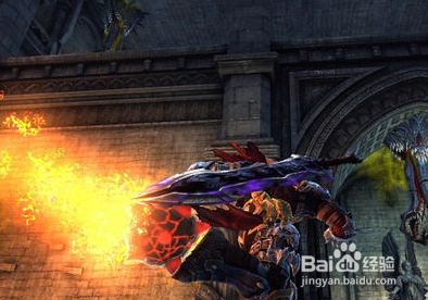 打垮Rot Mauler后,用十字刃锁定并射击门上的剑型机关,就能打开铁链封住的闸门。门后场景中心的岩浆里有个雕像,将雕像前后的红色水晶粉碎,就能用雕像面前的绞盘将其升起,并打开后方的两道门。