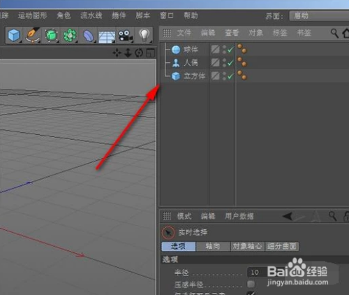 假设视图中有三个物体,人偶、立方体、球体;接下来要把这三个物体给打当作一组。