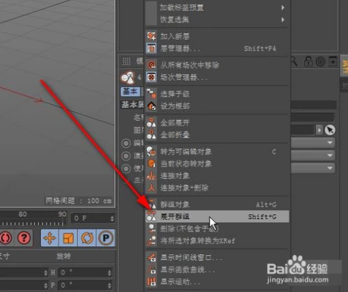 鼠标右击点击,弹出的菜单中选中:睁开群组;或者是直接按下快捷键:SHIFT+G,看对象办理器面板这里,这三个对象即从空白对象平分离出来。这三个物体解构成功,把空白对象删除。