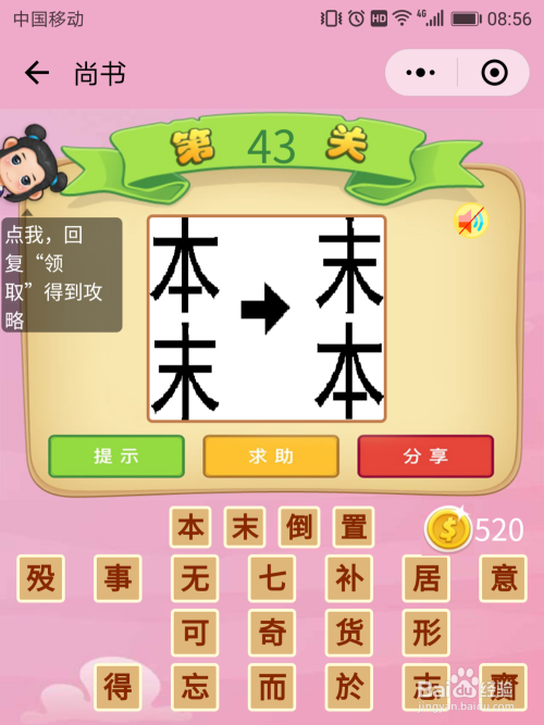 尚书43关谜底:这个不难,谜底是【本末颠倒】。