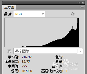 操纵PS里的直方图,可以很直不雅的看出照片的明暗区域像素数目分布,可以判定出照片的曝光优良环境。