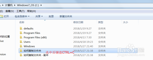 方式三:选中文件夹“如何复制文件夹”ctrl+c,需要粘贴ctrl+v;如图所示;