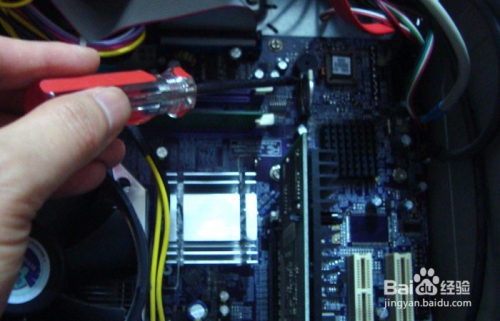 接着,用十字螺丝起子把电脑机箱侧边的螺丝取下来,如下图所示。