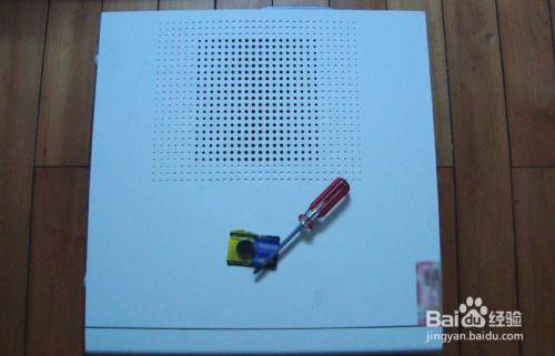 封闭电脑的电源,把机箱平放在地板上,并筹办好一个小起子和一个新的本家儿板电池,如下图所示。