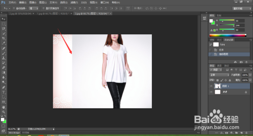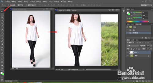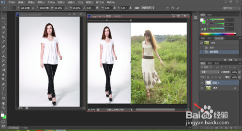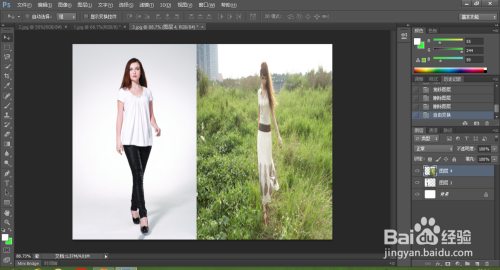 打开需要归并的两张图片,拖动窗口,让两张图片都显示出来。好比这里我们要将左边的图片与右边的归并。