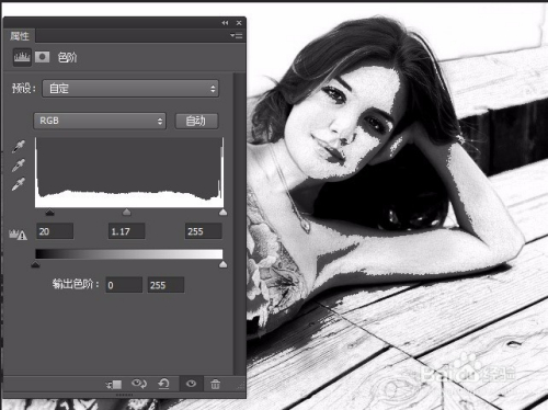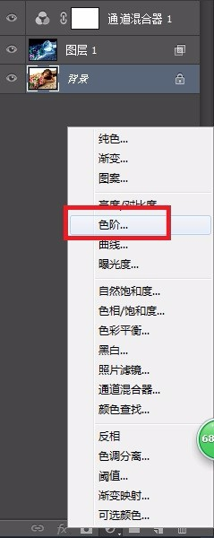 最后单击“建立新的填充或调整图层”按钮,选择“色阶”选项,在弹出的对话框内设置参数即可。