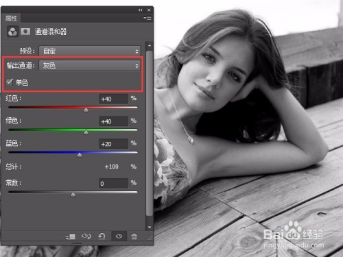 单击“建立新的填充或调整图层”按钮,选择“通道夹杂器”选项,在弹出的调整面板中设置各项参数。(如图示)