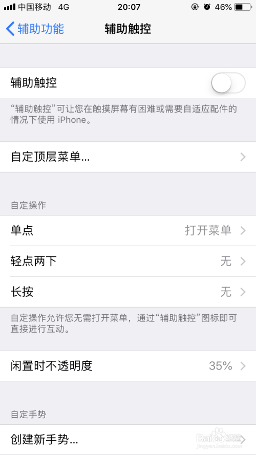 在辅助触控最上方,我们点击辅助触控右侧的按钮,打开这个功能。