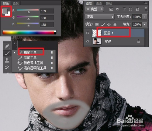 本例介绍如何给照片中人物添加胡子。