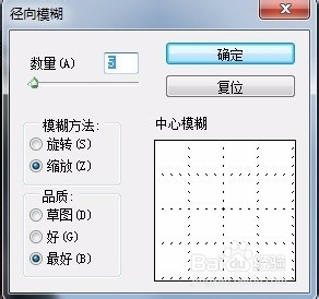单击“滤镜”/“恍惚”/“径标的目的恍惚”号令,在弹出的对话框中设置参数,单击确定按钮。