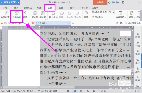 点击菜单栏上的核阅,快捷东西栏点击字数统计按钮