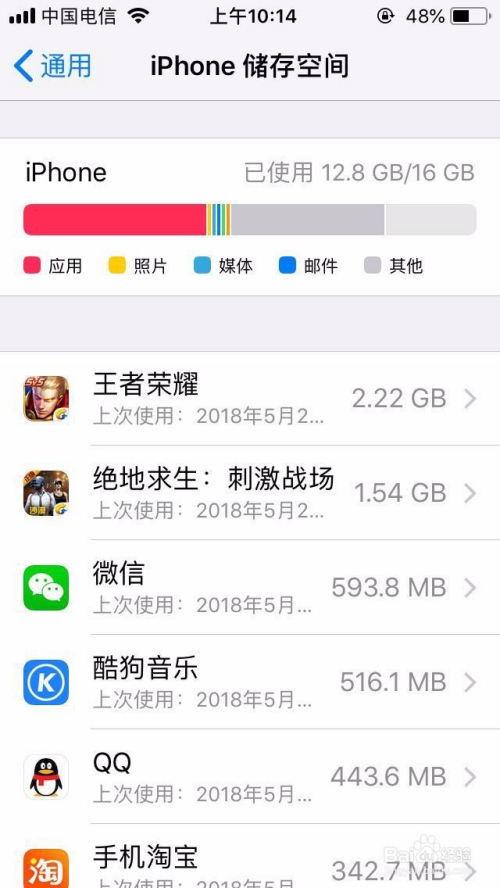 最后一招进入通用iPhone存储空间点击要删除的软件:若是是完全删除的就点击删除应用,保留聊天文件视频什么的,就 直接点击卸载应用,从头安装后会还原你的应用数据,卸载和删除都是为了腾出更多的空间,尘凡一般就删除应用的,尘凡的16g小苹果没法子丫 帮到亲的话记得点赞保藏哦~~~么么哒~