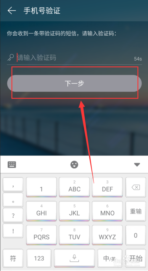 然后就是期待手机收取验证码了,正常环境下十几秒就可以收到的,若是没有到那就返回确认一下手机号码手否填写准确。收到验证码后,填入验证码,再点击【下一步】。