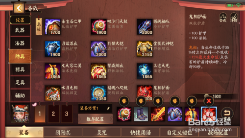 最后一个装备保举出水月无相或者鬼乡护面,因为小鹿男技术中就有护盾技术,所以出一件可以发生护盾的装备,会让小鹿男的保存能力更强,并且作为后期的肉盾,小鹿男肩负着团战的重任。