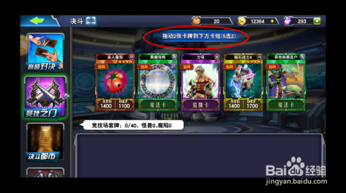 选择好游戏脚色之后,玩家需要本身组合卡组。每次系统匹配5张卡牌,玩家自立选择2张放入本身的卡组。卡组总共40张,选完为止(融合卡不计且不需要选)。