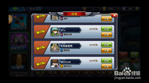 点击右下角的战报可以查看,决战记实。并可以查看回放 and 分享游戏年夜厅。