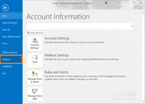1. 单击Outlook中的文件选项卡,然后单击选项。