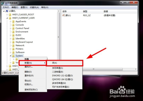 在需要的注册表目次中,鼠标右键此项,点击“新建——项”