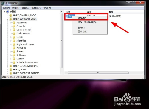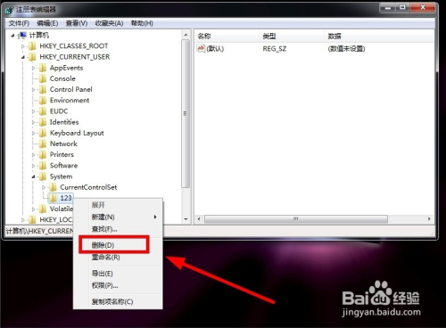 若是想要删除注册表中某一个键值项,只需要鼠标右键此项,点击“删除”即可