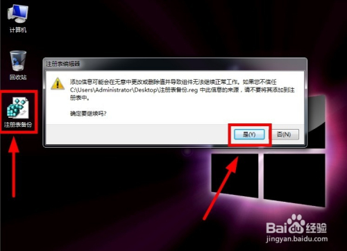 需要导入注册表的话,直接双击注册表备份文件导入即可,点击“是”