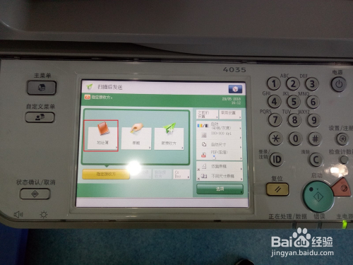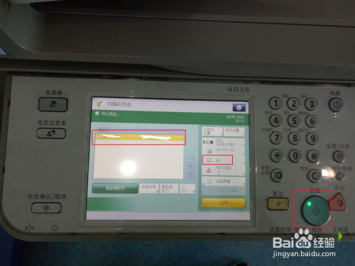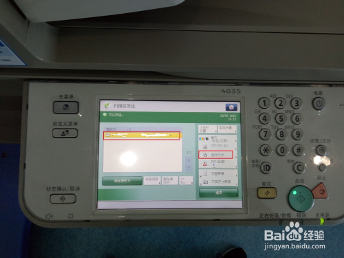 第一步:我们首先来到佳能4035扫描打印一体机面前,我们选择扫描到文件之后,选择地址簿。