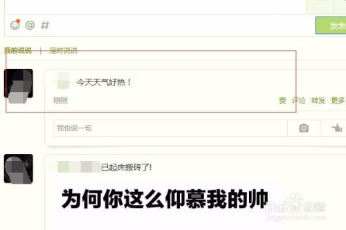设置好后,就可以点击右侧的颁发就完当作了说说的发布了。然后就会呈现下面的本身发布的说说了,如许就将本身的说说发布出来了。