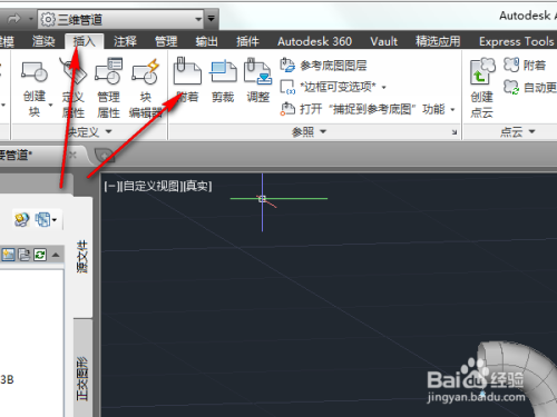 画管道先要定位,需要参照设备的位置。点击插入——附着。