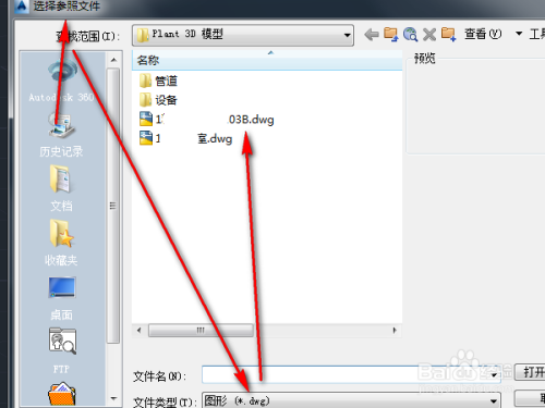 在弹出的对话框中点窜文件类型为.dwg,然后选择设备文件,点击打开。